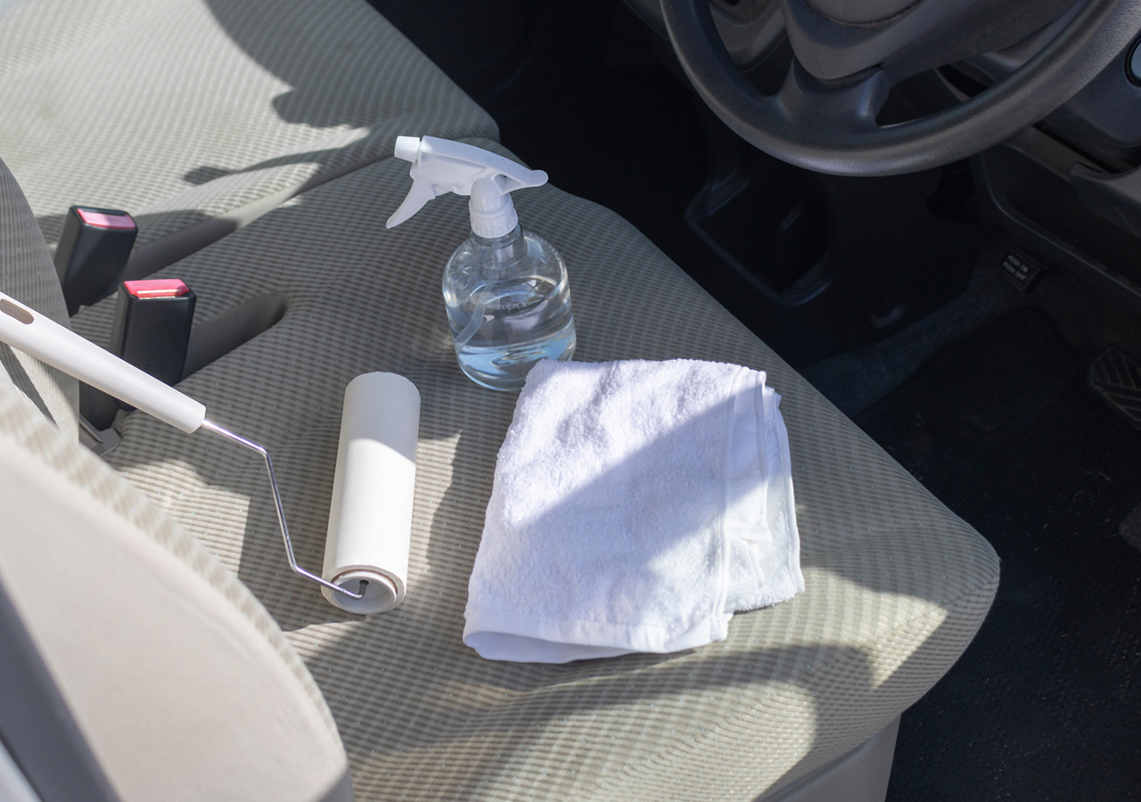 車内の素材や汚れの状態を一つずつ見極め、シート・天井・内張りまで丁寧にクリーニングします。